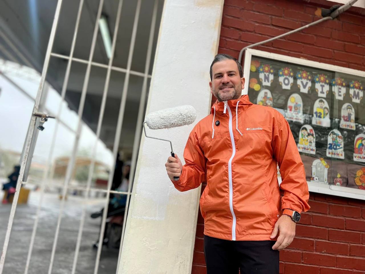 La primaria Hildebrado S. Garza Sepúlveda, de la colonia Nogales, fue donde el Lozano, inició de manera coordinada con maestros y padres de familia las acciones de “Renovando la escuela”, donando pintura para darle una “manita de gato” al recinto.